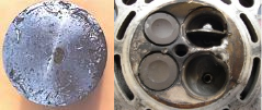 A good maintenance program is a crucial part of any off road bike or ATV’s life span. Internal engine parts begin to wear the moment the machine is first started and continue to do so until they eventually break or wear out. Maintenance is all about finding these inadequacies and repairing, or replacing them, before they cause major problems. An often ignored part of your engine is the cylinder head. Let’s face it, four stroke cylinder head and valve train maintenance is not going to be tops on the list when the sun is shining and you want to go riding. Unfortunately, poorly maintained valve trains have a way of ruining very expensive engine parts. When valve heads wear and start to mushroom, performance may not be the only thing you’re loosing. Valve faces do not wear evenly once they begin to mushroom. Deflection will occur every time the valve face makes contact with the seat. This deflection causes rapid seat and guide wear and if not serviced, will eventually cause the valve head to snap off and fall into the cylinder. Ouch! That’s going to leave a bruise. For this reason, your maintenance program should include cylinder head removal, disassembly and inspection at least once per year. Take short cuts and you could end up with something that looks like this!